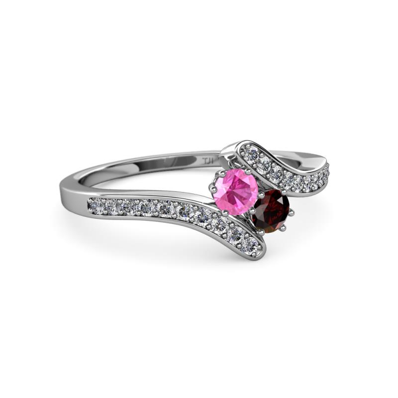 Pink Sapphire and Red Garnet 2 Stone with Side Diamonds Womens Bypass Engagement Ring 0.74 ctw 14K White Gold More Details ...