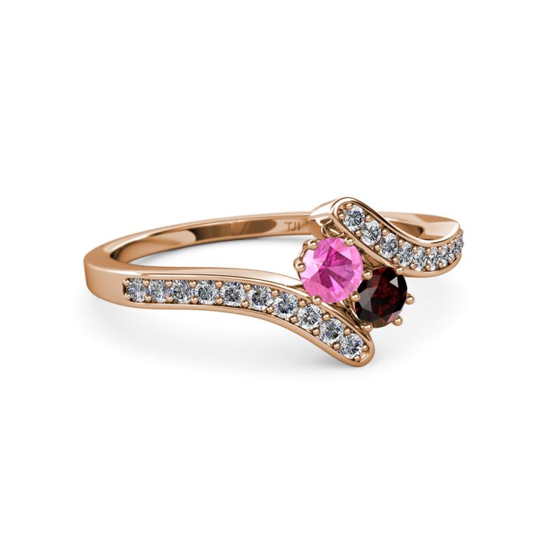 Pink Sapphire and Red Garnet 2 Stone with Side Diamonds Womens Bypass Engagement Ring 0.74 ctw 14K Rose Gold More Details ...