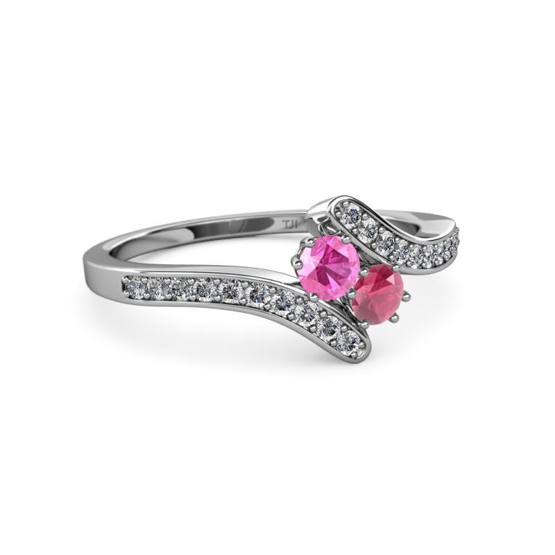 Pink Sapphire and Rhodolite Garnet 2 Stone with Side Diamonds Womens Bypass Engagement Ring 0.74 ctw 14K White Gold More Details ...