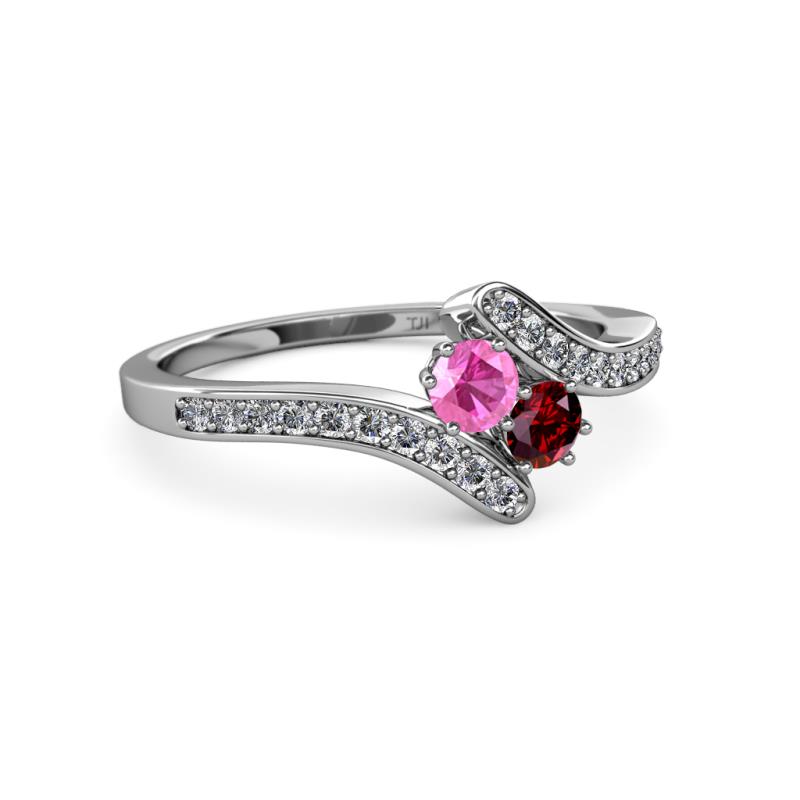 Pink Sapphire and Ruby 2 Stone with Side Diamonds Womens Bypass Engagement Ring 0.72 ctw 14K White Gold More Details ...