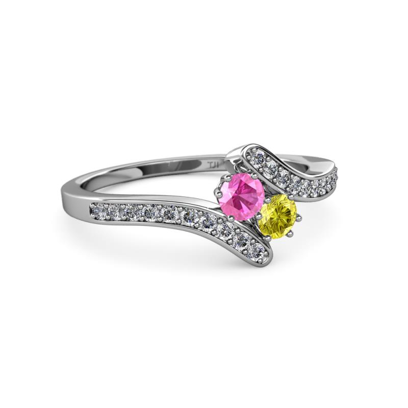 Pink Sapphire and Yellow Diamond 2 Stone with Side Diamonds Womens Bypass Engagement Ring 0.71 ctw 14K White Gold More Details ...
