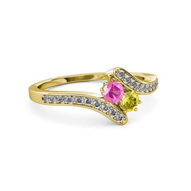 Pink Sapphire and Yellow Diamond 2 Stone with Side Diamonds Womens Bypass Engagement Ring 0.71 ctw 14K Yellow Gold More Details ...