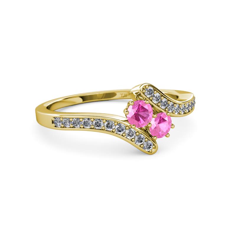 Pink Sapphire 2 Stone with Side Diamonds Womens Bypass Engagement Ring 0.72 ctw 14K Yellow Gold More Details ...