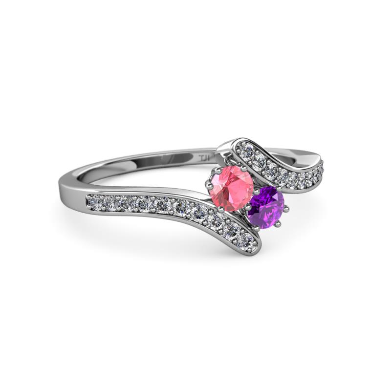 Pink Tourmaline and Amethyst 2 Stone with Side Diamonds Womens Bypass Engagement Ring 0.66 ctw 14K White Gold More Details ...