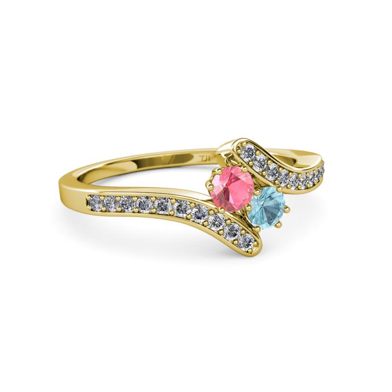 Pink Tourmaline and Aquamarine 2 Stone with Side Diamonds Womens Bypass Engagement Ring 0.66 ctw 14K Yellow Gold More Details ...