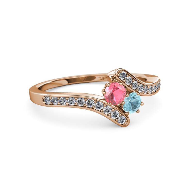 Pink Tourmaline and Aquamarine 2 Stone with Side Diamonds Womens Bypass Engagement Ring 0.66 ctw 14K Rose Gold More Details ...