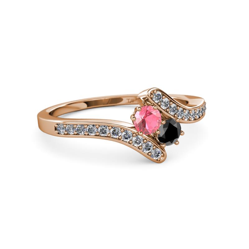 Pink Tourmaline and Black Diamond 2 Stone with Side Diamonds Womens Bypass Engagement Ring 0.69 ctw 14K Rose Gold More Details ...