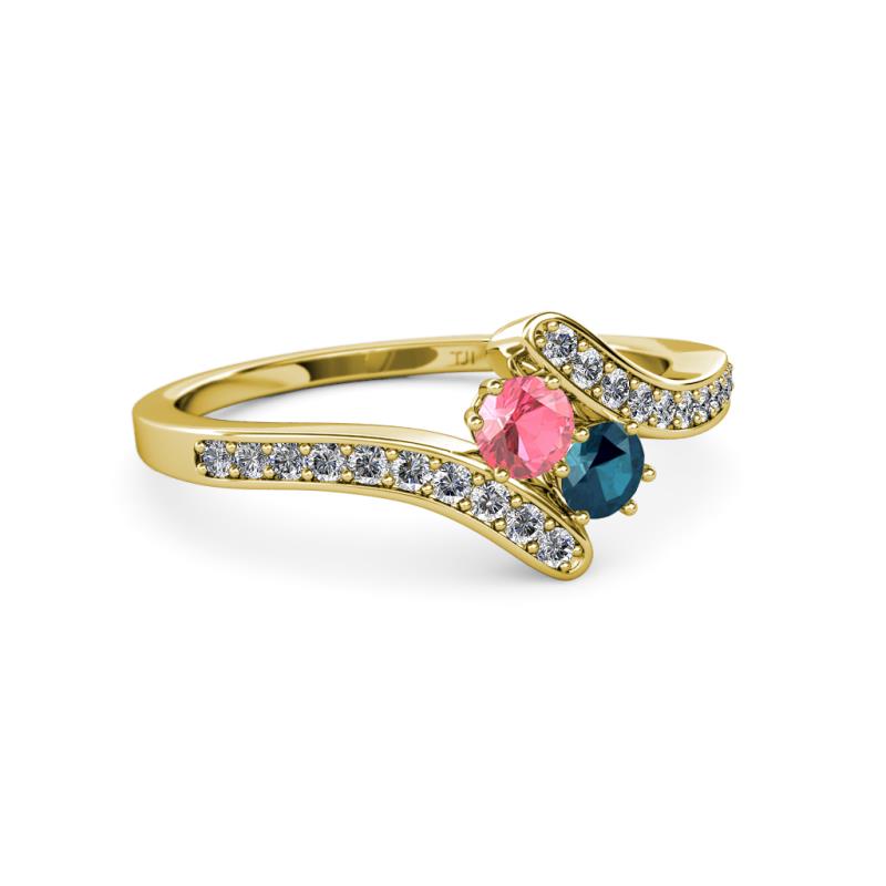 Pink Tourmaline and Blue Diamond 2 Stone with Side Diamonds Womens Bypass Engagement Ring 0.68 ctw 14K Yellow Gold More Details ...