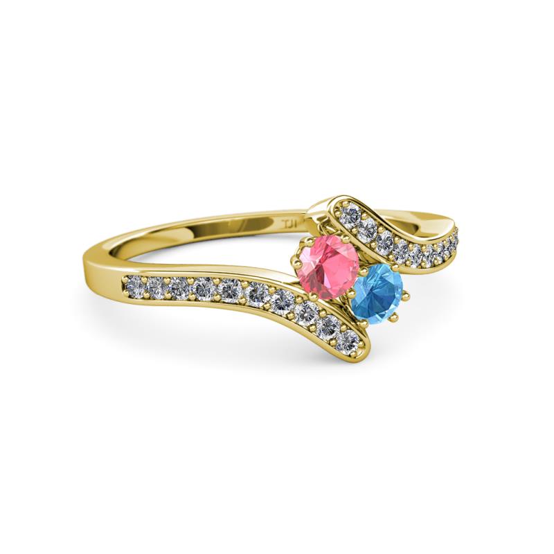 Pink Tourmaline and Blue Topaz 2 Stone with Side Diamonds Womens Bypass Engagement Ring 0.70 ctw 14K Yellow Gold More Details ...