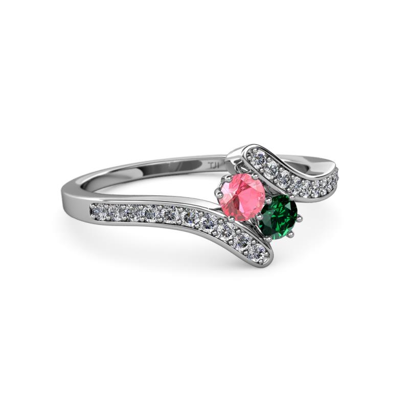 Pink Tourmaline and Emerald 2 Stone with Side Diamonds Womens Bypass Engagement Ring 0.66 ctw 14K White Gold More Details ...