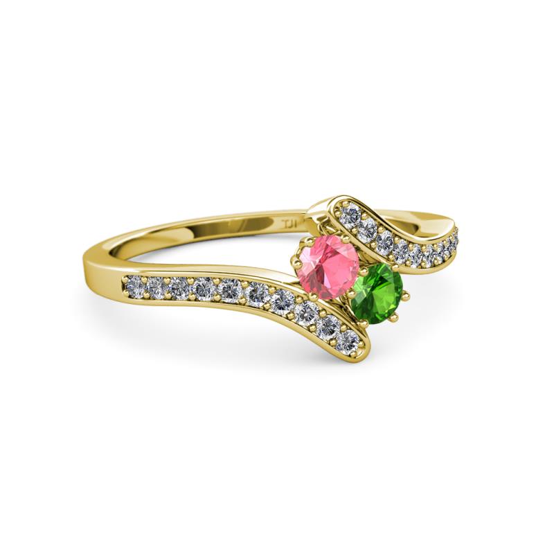 Pink Tourmaline and Green Garnet 2 Stone with Side Diamonds Womens Bypass Engagement Ring 0.71 ctw 14K Yellow Gold More Details ...