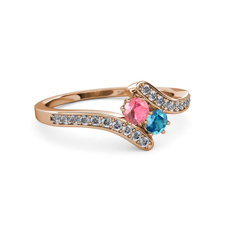 Pink Tourmaline and London Blue Topaz 2 Stone with Side Diamonds Womens Bypass Engagement Ring 0.70 ctw 14K Rose Gold More Details ...