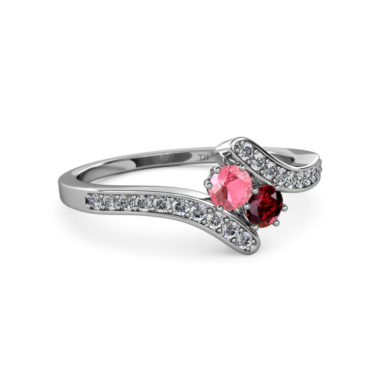 Pink Tourmaline and Ruby 2 Stone with Side Diamonds Womens Bypass Engagement Ring 0.69 ctw 14K White Gold More Details ...