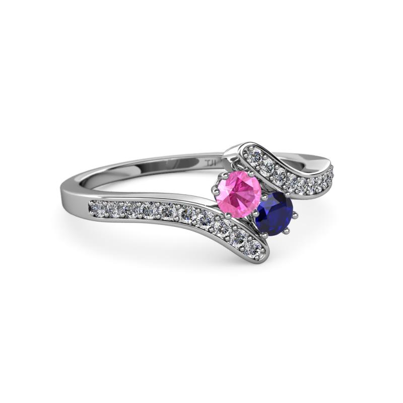 Pink and Blue Sapphire 2 Stone with Side Diamonds Womens Bypass Engagement Ring 0.72 ctw 14K White Gold More Details ...