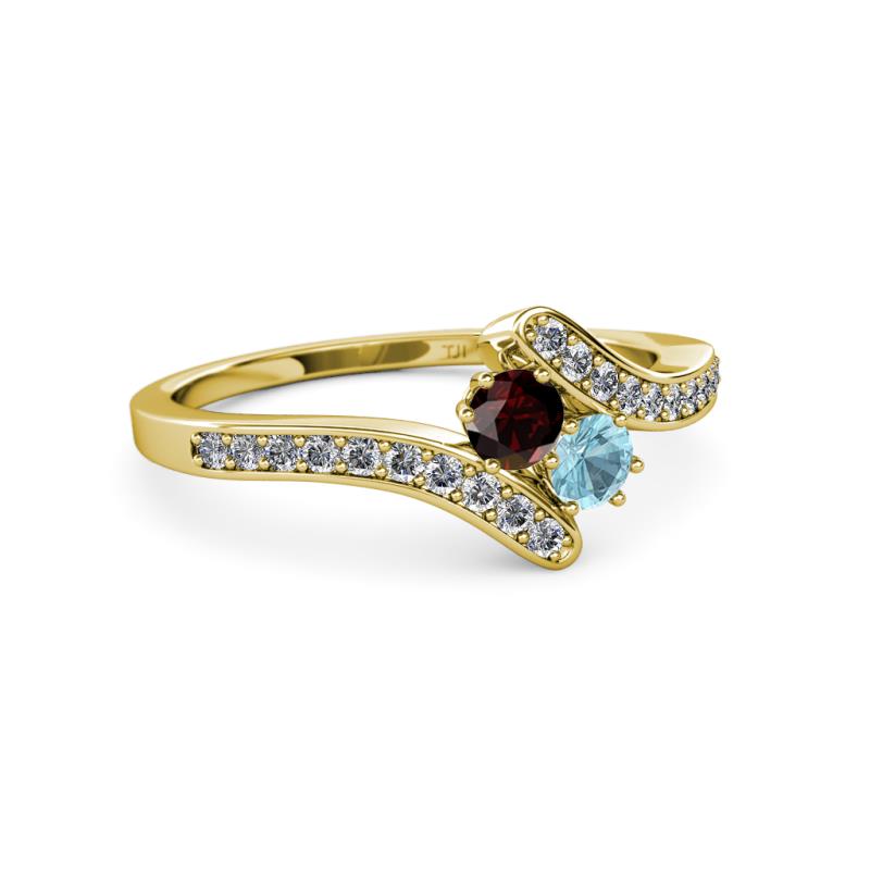 Red Garnet and Aquamarine 2 Stone with Side Diamonds Womens Bypass Engagement Ring 0.71 ctw 14K Yellow Gold More Details ...
