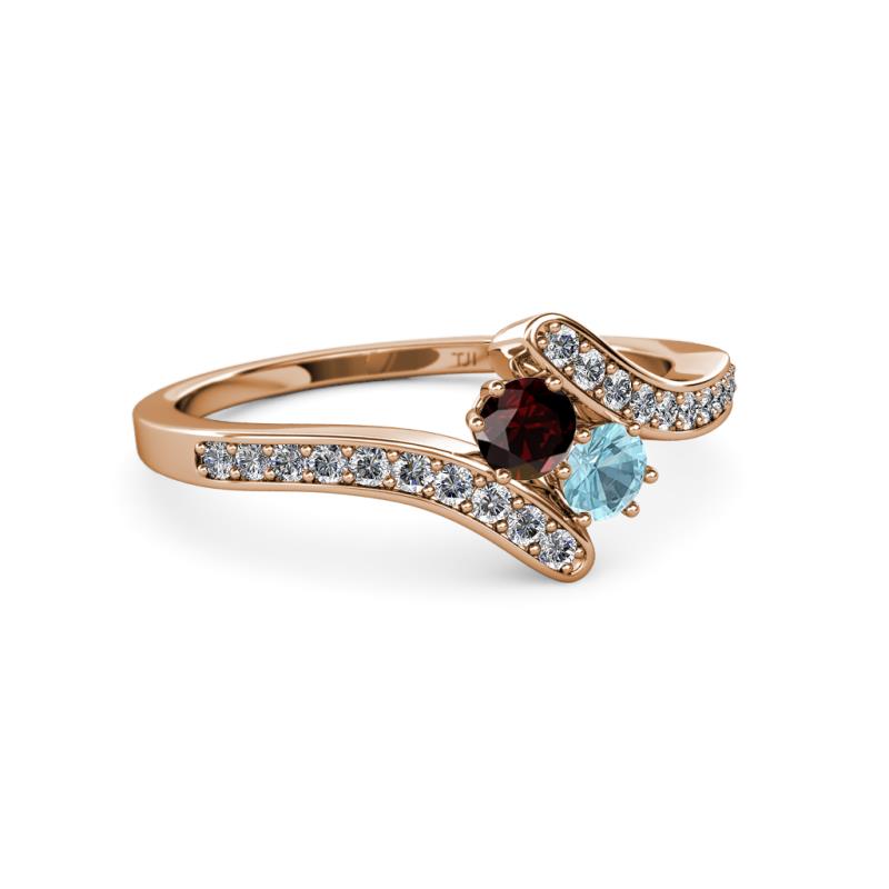 Red Garnet and Aquamarine 2 Stone with Side Diamonds Womens Bypass Engagement Ring 0.71 ctw 14K Rose Gold More Details ...