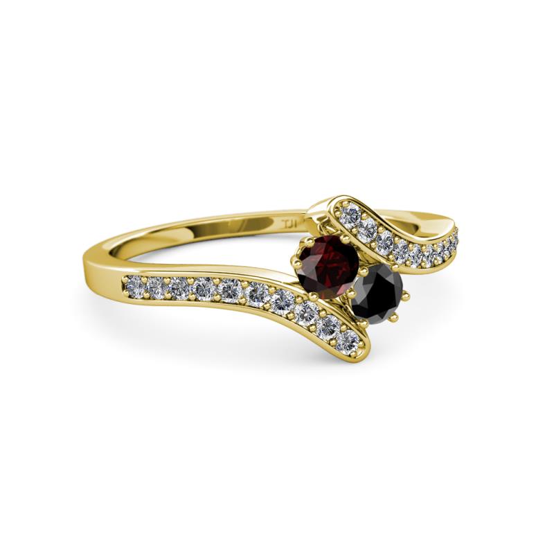 Red Garnet and Black Diamond 2 Stone with Side Diamonds Womens Bypass Engagement Ring 0.74 ctw 14K Yellow Gold More Details ...