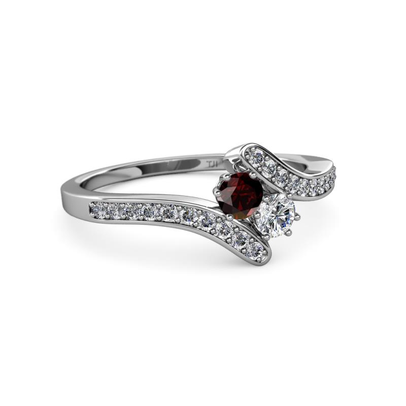 Red Garnet and Diamond 2 Stone with Side Diamonds Womens Bypass Engagement Ring 0.73 ctw 14K White Gold More Details ...