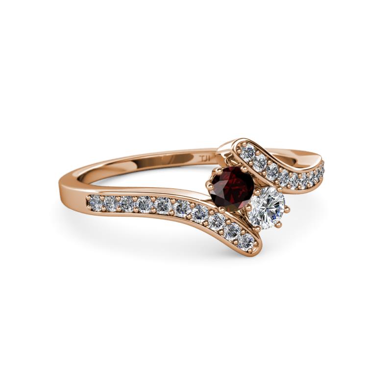 Red Garnet and Diamond 2 Stone with Side Diamonds Womens Bypass Engagement Ring 0.73 ctw 14K Rose Gold More Details ...