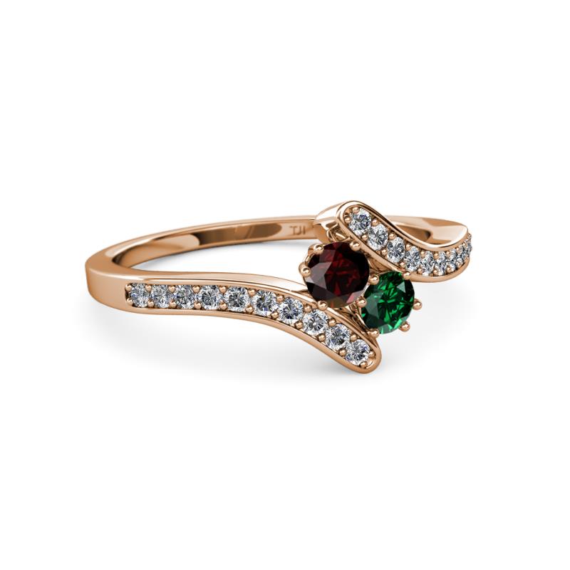 Red Garnet and Emerald 2 Stone with Side Diamonds Womens Bypass Engagement Ring 0.71 ctw 14K Rose Gold More Details ...