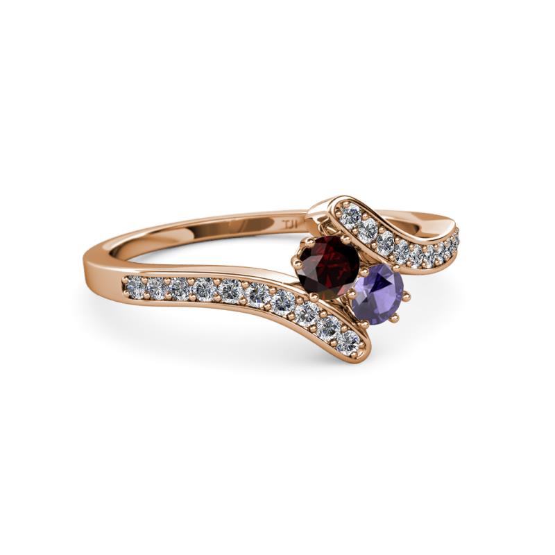 Red Garnet and Iolite 2 Stone with Side Diamonds Womens Bypass Engagement Ring 0.71 ctw 14K Rose Gold More Details ...