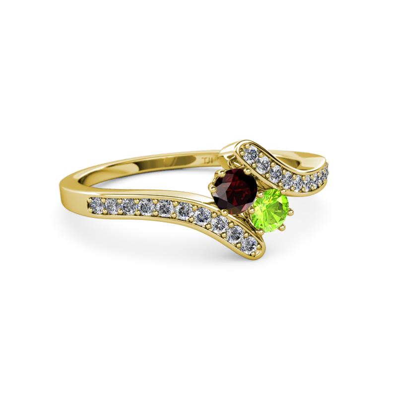 Red Garnet and Peridot 2 Stone with Side Diamonds Womens Bypass Engagement Ring 0.76 ctw 14K Yellow Gold More Details ...
