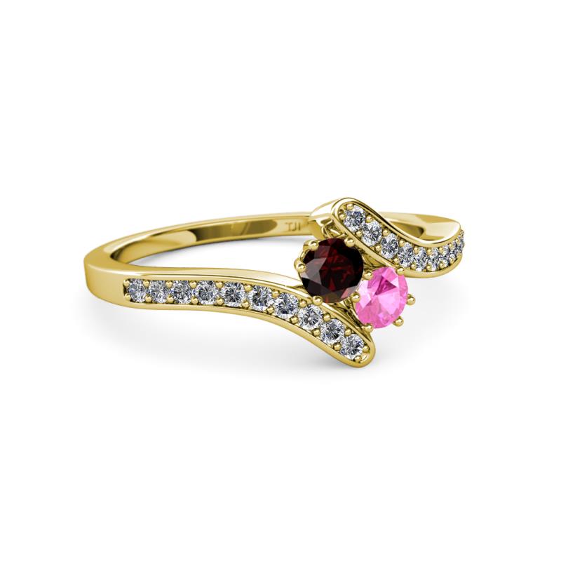 Red Garnet and Pink Sapphire 2 Stone with Side Diamonds Womens Bypass Engagement Ring 0.74 ctw 14K Yellow Gold More Details ...