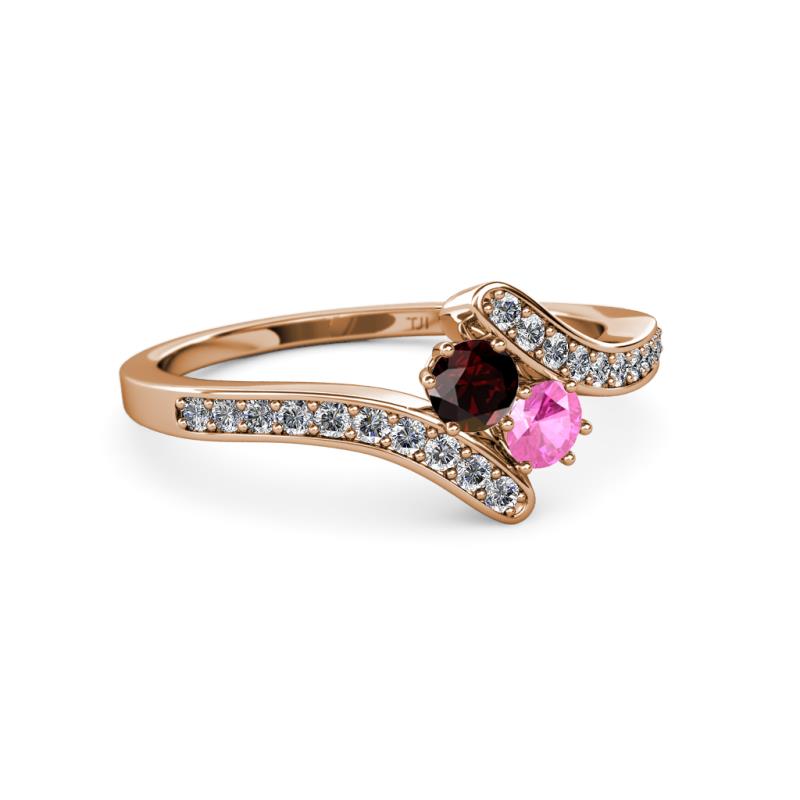 Red Garnet and Pink Sapphire 2 Stone with Side Diamonds Womens Bypass Engagement Ring 0.74 ctw 14K Rose Gold More Details ...