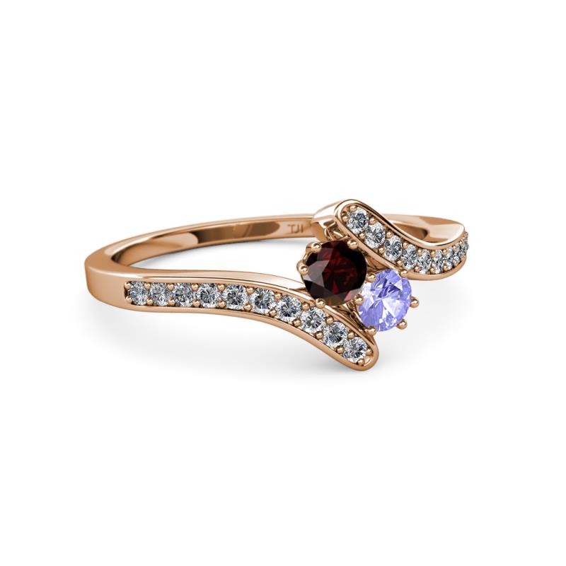Red Garnet and Tanzanite 2 Stone with Side Diamonds Womens Bypass Engagement Ring 0.73 ctw 14K Rose Gold More Details ...