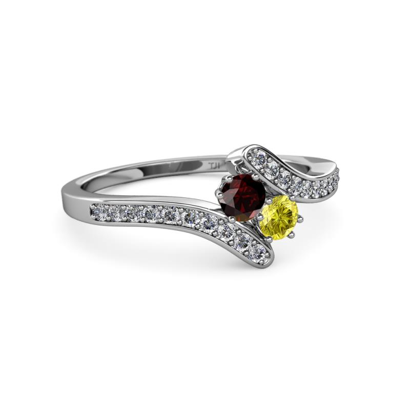 Red Garnet and Yellow Diamond 2 Stone with Side Diamonds Womens Bypass Engagement Ring 0.73 ctw 14K White Gold More Details ...