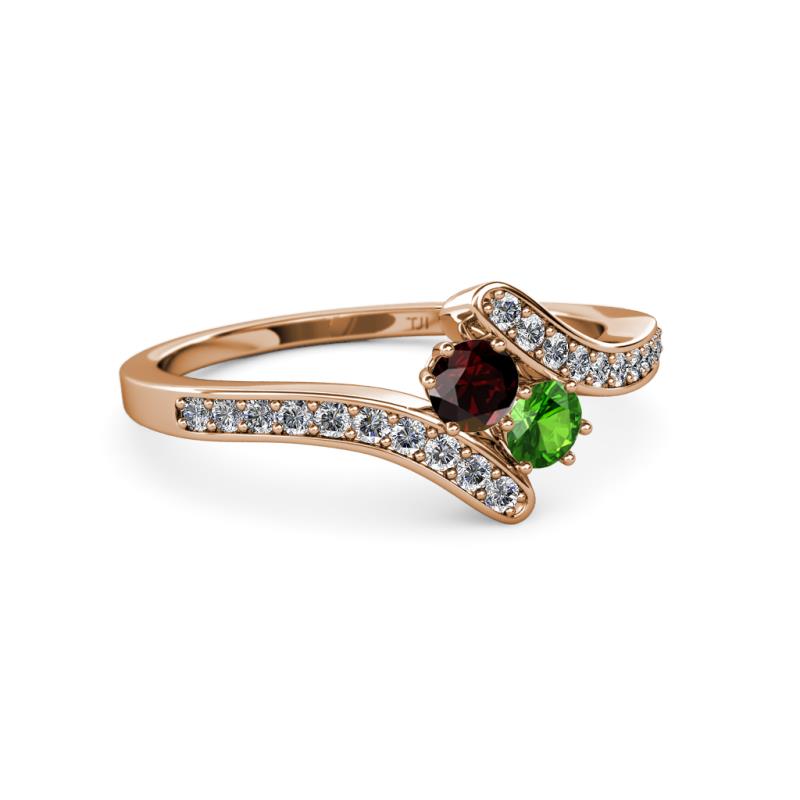 Red and Green Garnet 2 Stone with Side Diamonds Womens Bypass Engagement Ring 0.76 ctw 14K Rose Gold More Details ...