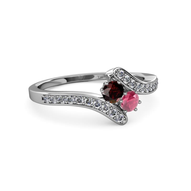 Red and Rhodolite Garnet 2 Stone with Side Diamonds Womens Bypass Engagement Ring 0.76 ctw 14K White Gold More Details ...