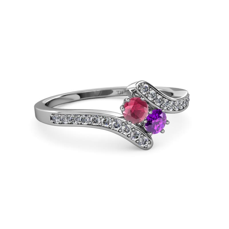 Rhodolite Garnet and Amethyst 2 Stone with Side Diamonds Womens Bypass Engagement Ring 0.71 ctw 14K White Gold More Details ...