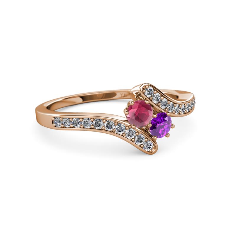 Rhodolite Garnet and Amethyst 2 Stone with Side Diamonds Womens Bypass Engagement Ring 0.71 ctw 14K Rose Gold More Details ...