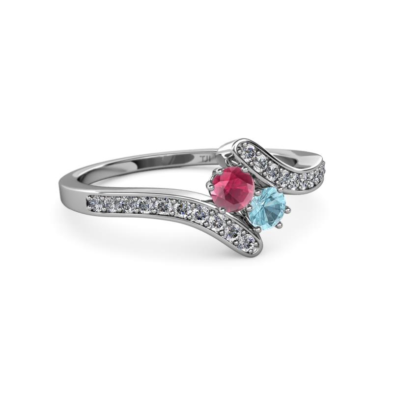 Rhodolite Garnet and Aquamarine 2 Stone with Side Diamonds Womens Bypass Engagement Ring 0.71 ctw 14K White Gold More Details ...