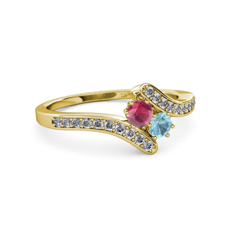Rhodolite Garnet and Aquamarine 2 Stone with Side Diamonds Womens Bypass Engagement Ring 0.71 ctw 14K Yellow Gold More Details ...