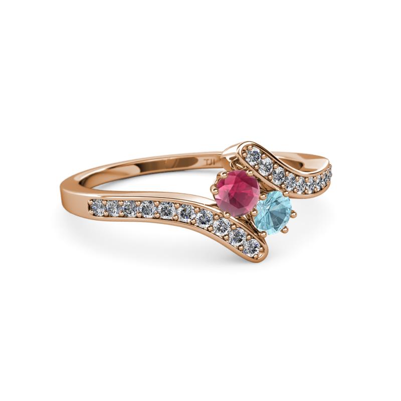 Rhodolite Garnet and Aquamarine 2 Stone with Side Diamonds Womens Bypass Engagement Ring 0.71 ctw 14K Rose Gold More Details ...