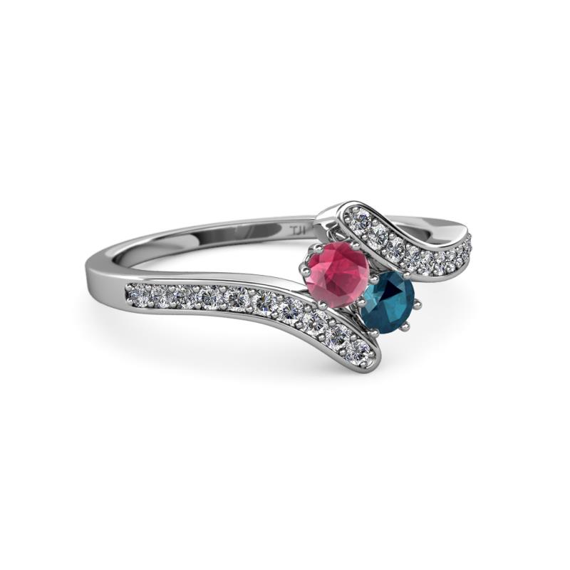 Rhodolite Garnet and Blue Diamond 2 Stone with Side Diamonds Womens Bypass Engagement Ring 0.73 ctw 14K White Gold More Details ...
