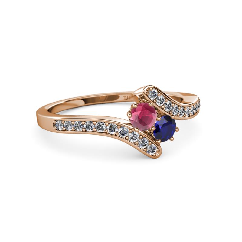 Rhodolite Garnet and Blue Sapphire 2 Stone with Side Diamonds Womens Bypass Engagement Ring 0.74 ctw 14K Rose Gold More Details ...