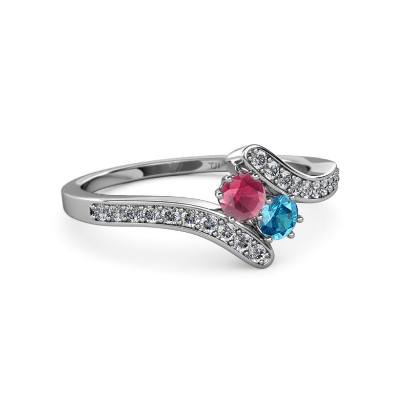 Rhodolite Garnet and London Blue Topaz 2 Stone with Side Diamonds Womens Bypass Engagement Ring 0.75 ctw 14K White Gold More Details ...