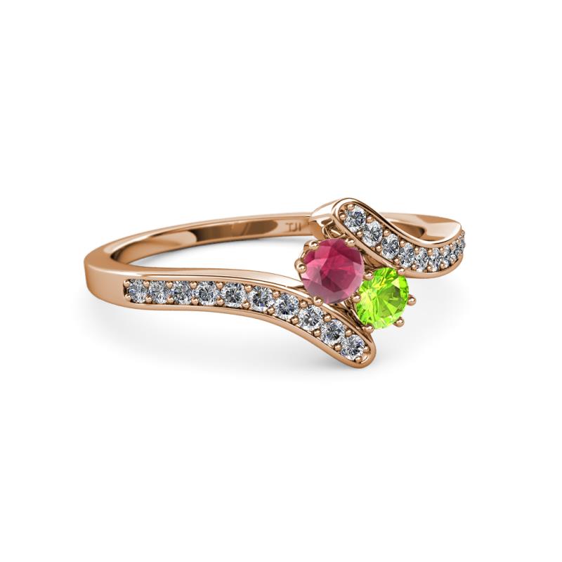 Rhodolite Garnet and Peridot 2 Stone with Side Diamonds Womens Bypass Engagement Ring 0.76 ctw 14K Rose Gold More Details ...