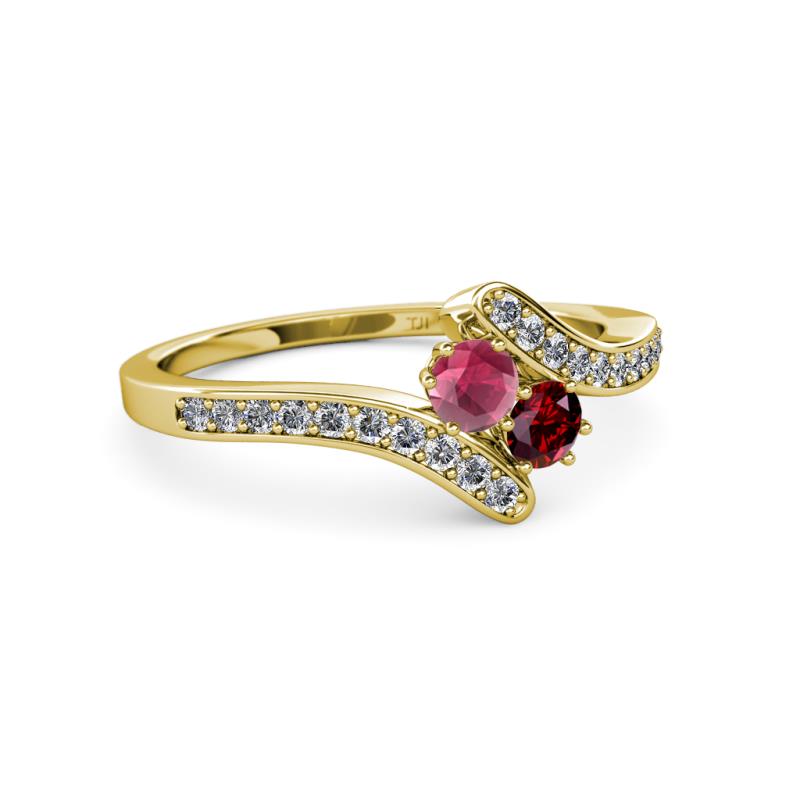 Rhodolite Garnet and Ruby 2 Stone with Side Diamonds Womens Bypass Engagement Ring 0.74 ctw 14K Yellow Gold More Details ...