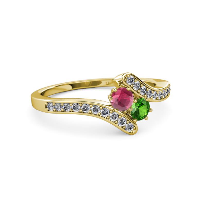 Rhodolite and Green Garnet 2 Stone with Side Diamonds Womens Bypass Engagement Ring 0.76 ctw 14K Yellow Gold More Details ...