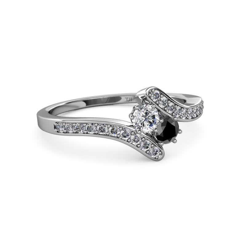 Round Black and White Diamond 2 Stone with Side Diamonds Bypass Engagement Ring 0.71 Carat tw in 14K White Gold. More Details ...