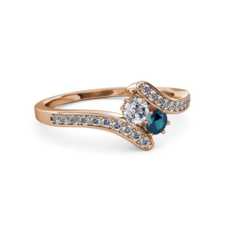 Round Blue and White Diamond 2 Stone with Side Diamonds Bypass Engagement Ring 0.70 Carat tw in 14K Rose Gold. More Details ...