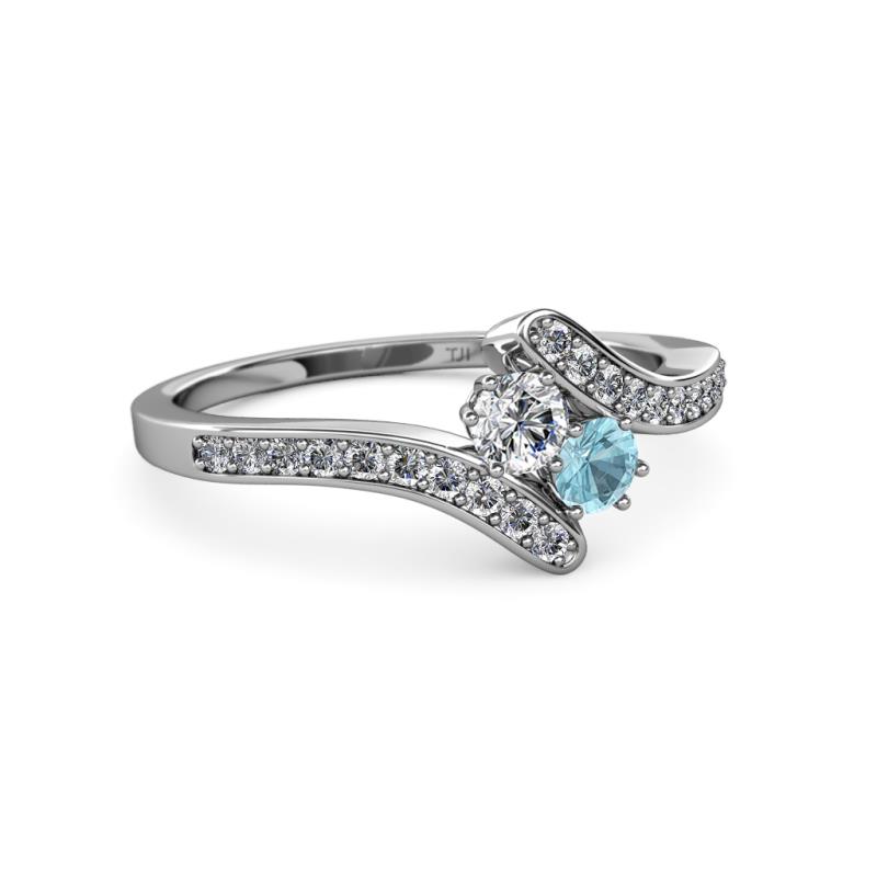 Round Diamond and Aquamarine 2 Stone with Side Diamonds Bypass Engagement Ring 0.68 Carat tw in 14K White Gold. More Details ...