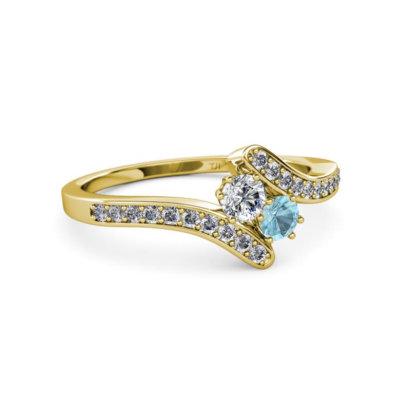 Round Diamond and Aquamarine 2 Stone with Side Diamonds Bypass Engagement Ring 0.68 Carat tw in 14K Yellow Gold. More Details ...