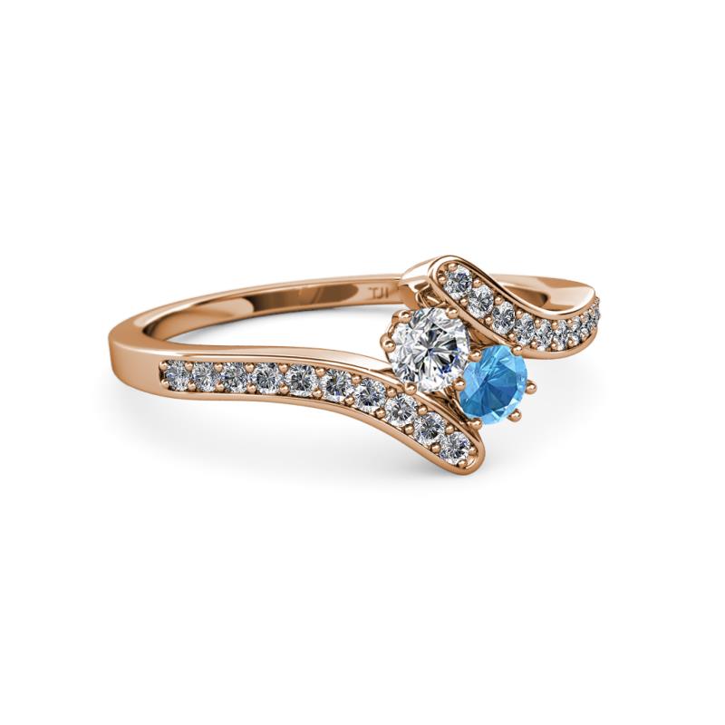 Round Diamond and Blue Topaz 2 Stone with Side Diamonds Bypass Engagement Ring 0.68 Carat tw in 14K Rose Gold. More Details ...