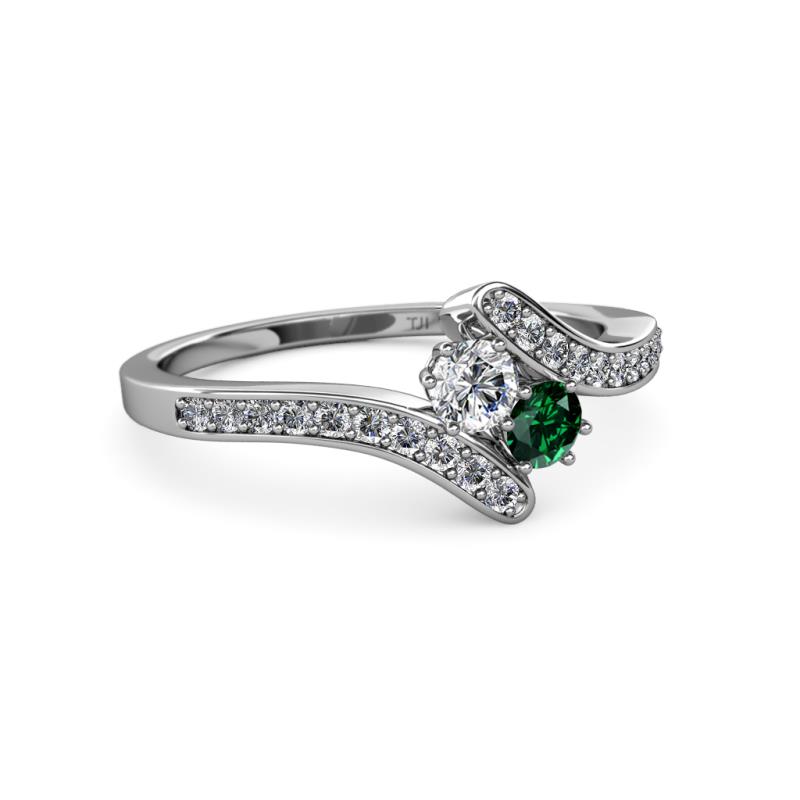 Designed with a meaningful expression of love, this Ring have mesmerizing combination of Diamond & Emerald which represents you & your loved one embraced by fascinating Diamond bypass shank symbolizing that your life revolves around each other.