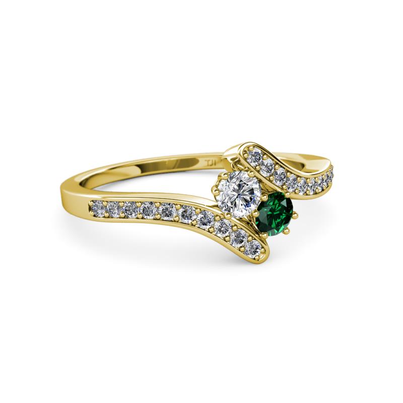 Round Diamond and Emerald 2 Stone with Side Diamonds Bypass Engagement Ring 0.68 Carat tw in 14K Yellow Gold. More Details ...